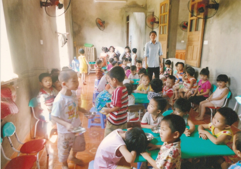 Nous retrouvons en ce début d'année la garderie de Ngoc Dong (5 premières vues). Les enfants sont maintenant 50, pressés les uns contre les autre dans leur petit local. A quelques dizaines de mètres de là commence à s'élever le nouveau bâtiment, dont Enfance-Avenir a procuré l'été dernier les matériaux de construction, et qui offrira une capacité d’accueil de 100 places.