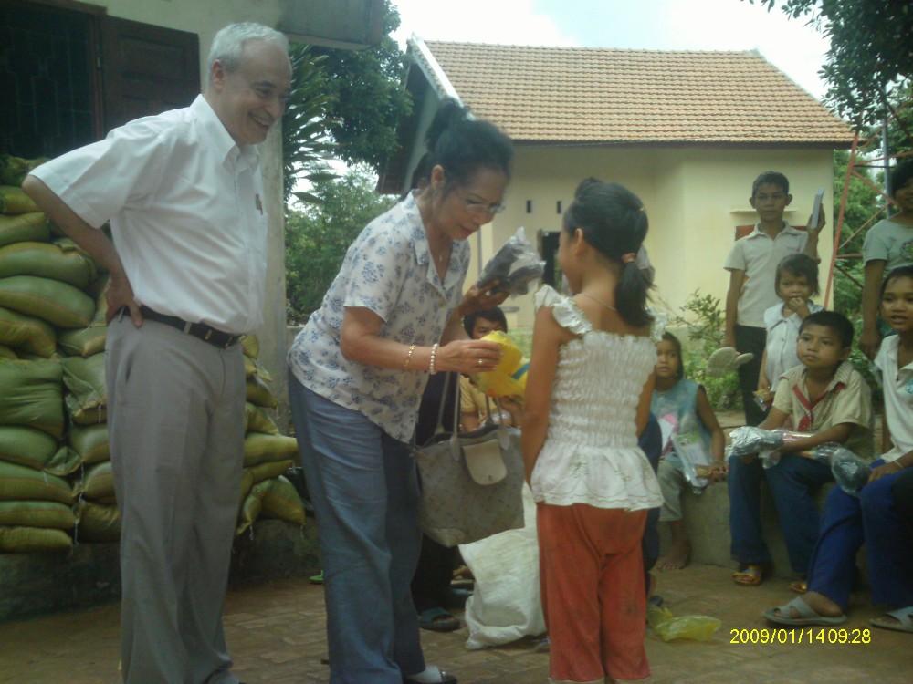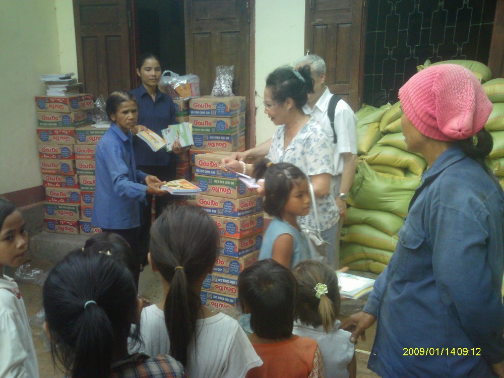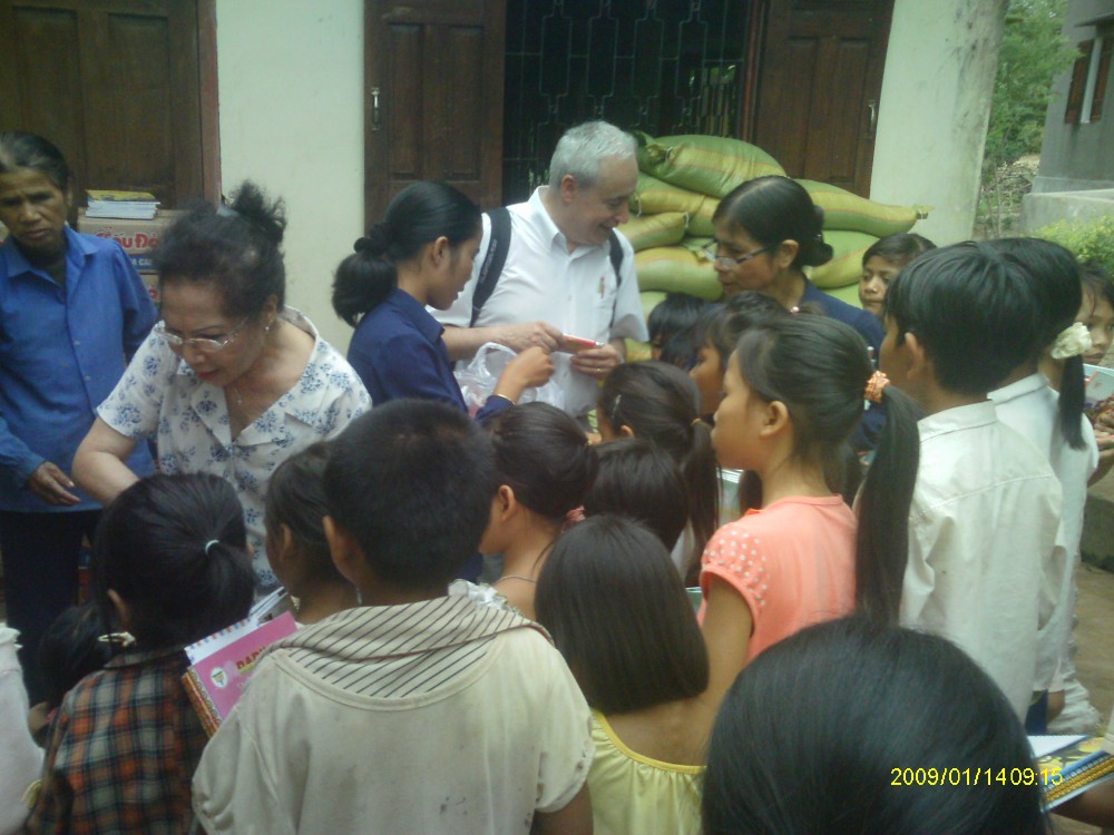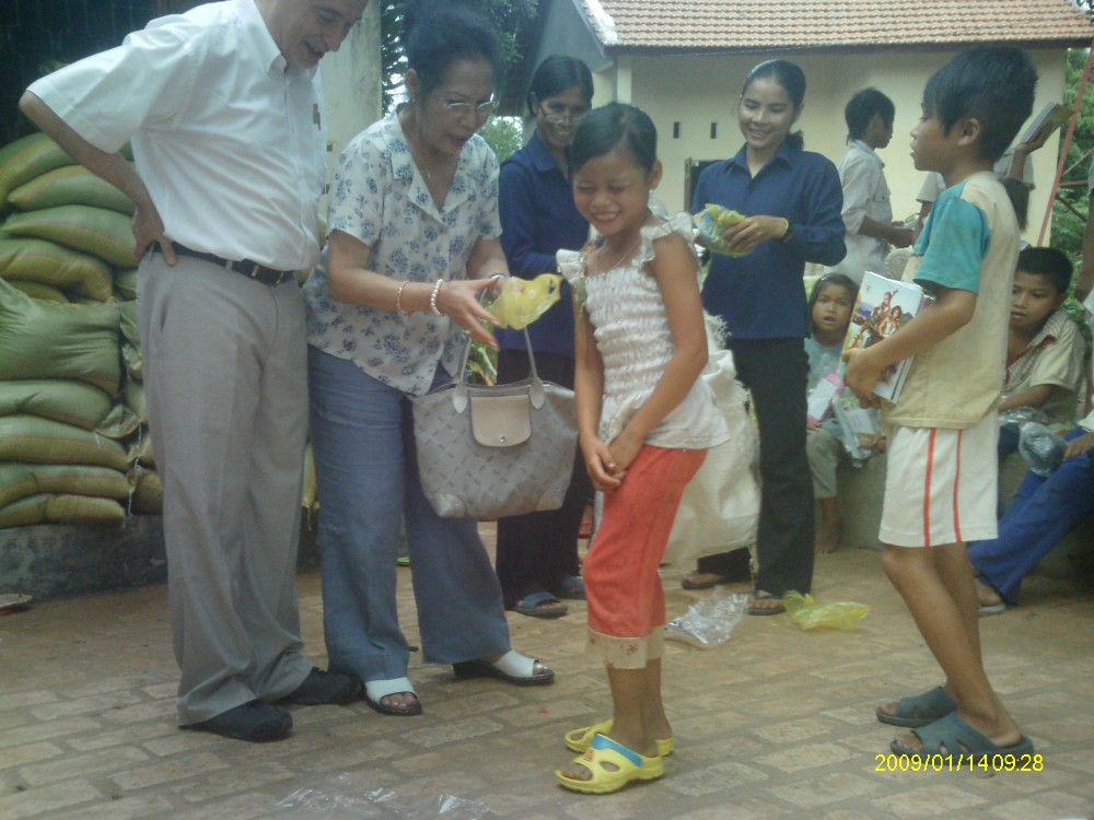 Kon Klor 2 est proche de Kontum, mais on évite d'y aller en voiture car le chemin est impraticable. Les Sœurs de la communauté de Saint Paul de Chartres à Kontum ont mis à notre disposition une voiturette tout terrain capable d'accéder à l'orphelinat n°5 des Sœurs de la Charité. Enfance-Avenir a apporté aux 60 orphelins la même aide qu'à ceux de Kon Doxing : riz (10 kg par enfant), pâtes alimentaires (un carton de mì gói par enfant), biscuits, friandises, tongues, matériel scolaire et 50.000 VNĐ (2€) par enfant pour payer leur école.
