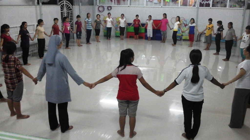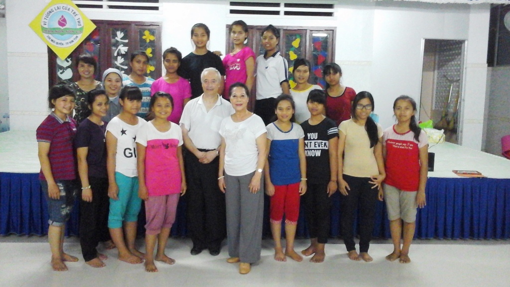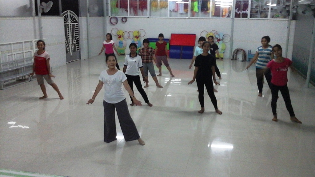 Kon Tum 2015 - Cours de danse en ligne aux animatrices et aux enfants démunis à l'internat des Soeurs