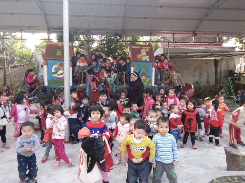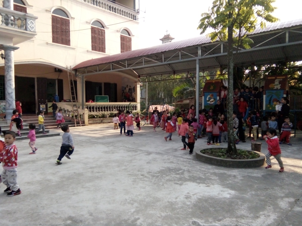 Enfance-Avenir avait cet été rendu visite à la garderie Mầm Non, qui accueille actuellement cent trente enfants dans leur nouveau bâtiment. Les responsables de la garderie avaient souhaité aménager un préau de 200 m2 dans la grande cour pour protéger les enfants du soleil et de la pluie. Enfance-Avenir a contribué pour 26 146 000 VND (1 000 €) à la réalisation de ce projet qui a été mené à bien cet automne.